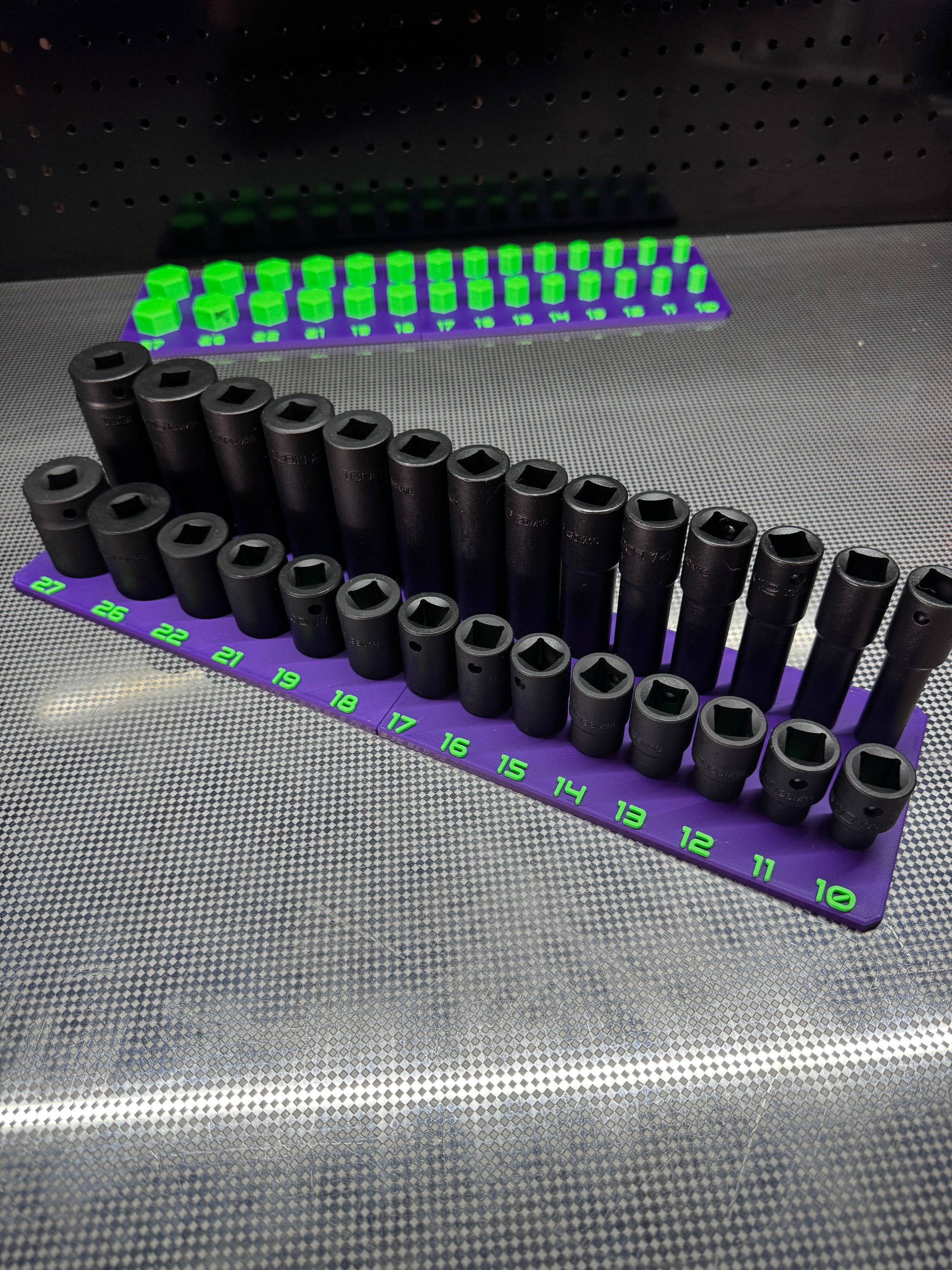 Icon 1/2 impact socket rails offer customizable color options and come in both single and dual rail styles. These rails are non-magnetic and designed for maximum durability and organization. A must-have for any workshop or garage.